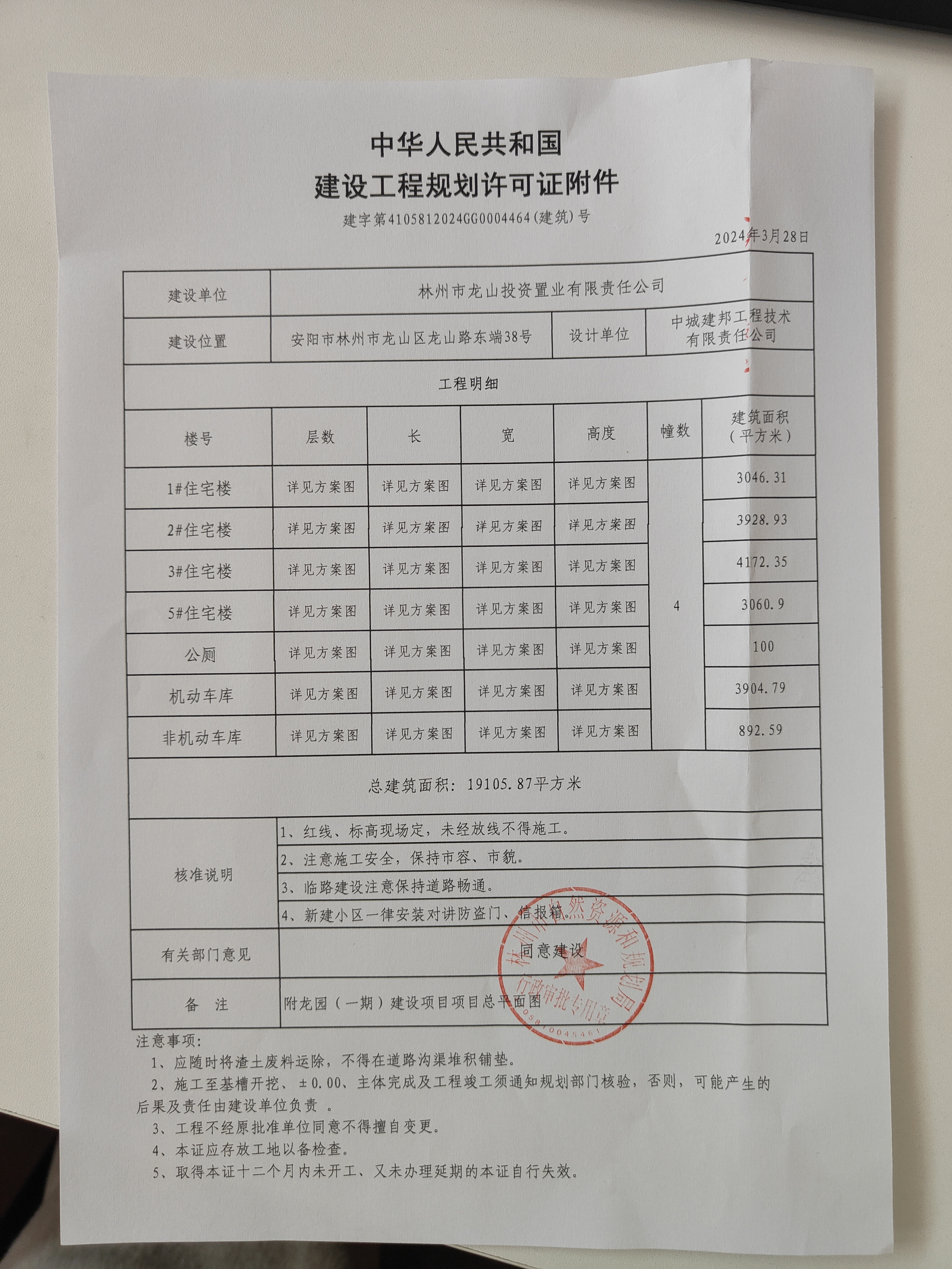 林州市龙山投资置业有限责任公司龙园(一期)建设项目批后公告